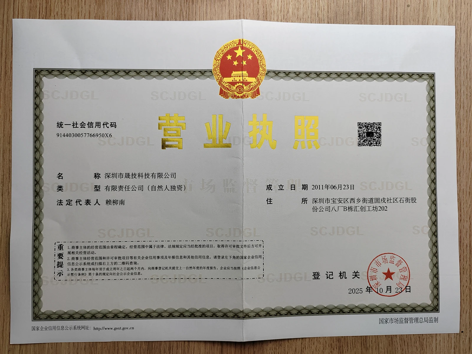Registered address : Room 202, Huichuang Workshop, Building B, Eighth Factory of Shijie Joint Stock Company, Gushu Community, Xixiang Subdistrict Shenzhen Guangdong China